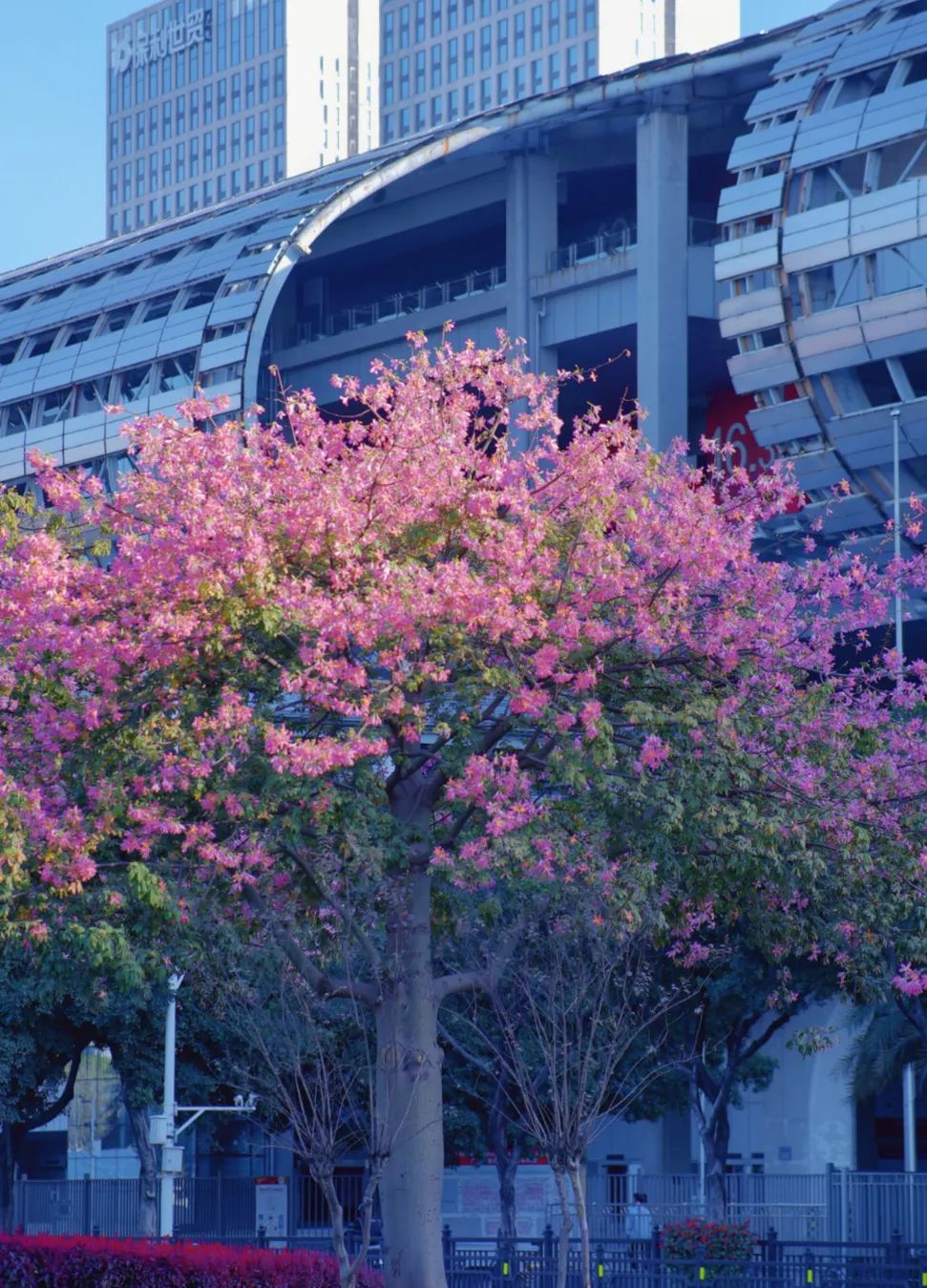 路边的异木棉、簕杜鹃
