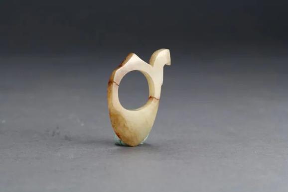 这些指环类取材于天然的兽骨、牙骨、玉石等,虽然工艺简单,但制作精良,表面被打磨光滑,有的还镶嵌有绿松石。这是中国发现的最早的“戒指”。史书上还没有关于它的记录,它便已出现在人们的日常生活中。