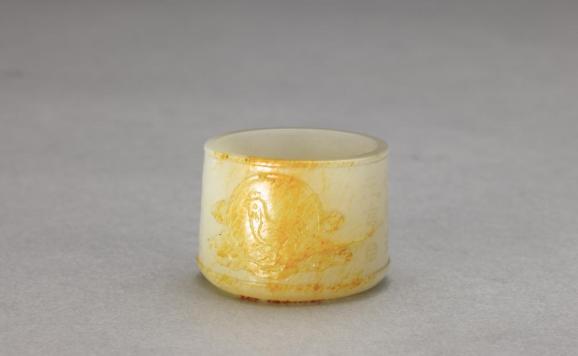 清 乾隆题诗青玉鸡兔纹扳指 故宫博物院藏