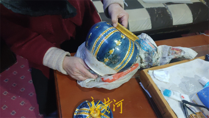 “给你看样好东西。”店家走到另一个角落,打开一个上锁的橱子,从里面掏出一个“大物件”,用塑料袋包了起来,显得颇为神秘。店家缓缓打开塑料袋,再扒开外面裹着的报纸,一个瓷罐赫然映入眼帘。瓷罐大约高20厘米,器型端庄,色彩华丽,上面还有修补过的痕迹。“这可是镇店之宝啊,唐代万年罐,少了18万不卖。如果不是有破损修补过,那可就是无价之宝了。”店家颇为得意地说。
