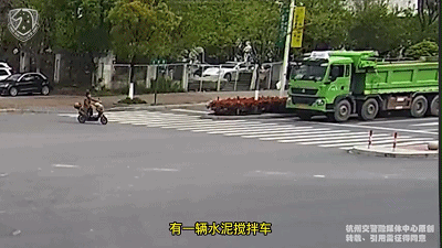 浙江杭州一位老年人骑电动自行车横过马路时,看到路口车辆变少,且垂直方向的大货车让行,由于赶时间,在斑马线信号灯为红灯的情况下,索性闯红灯直接通过,可她未预料到,垂直方向一辆水泥搅拌车正快速驶来,紧急制动下车辆发生侧翻将她连人带车掩埋……