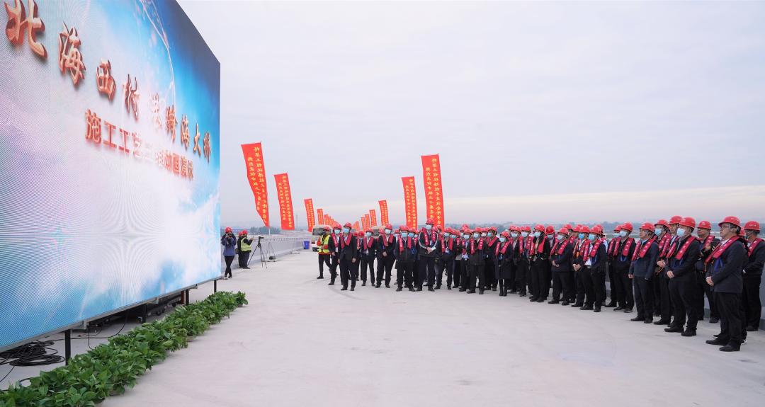 由中铁二十局三公司承建的北海市跨海第一桥——西村港跨海大桥全长2544米,其中,跨海桥梁总长1776米,桥面宽38米,设计为双向6车道。该桥建成后,将连通北海市银滩新城和海洋新城,对北海市创建全国向海经济的创新发展示范城市,构建面向东盟的国际大通道具有重要意义。
