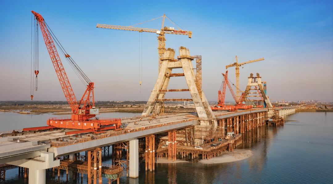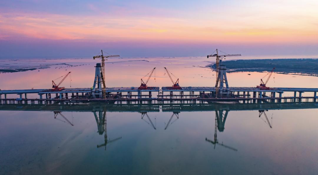 大桥所在的西村港海域风大浪急,水文情况复杂。施工中,建设团队针对海上施工制定了详细的施工方案。
