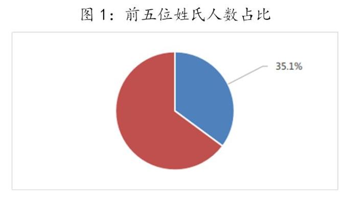 排名前五位姓氏(李、杨、张、王、陈)的常住人口数量为1659.1万人,占全省常住人口数量的35.1%。(如图1)
