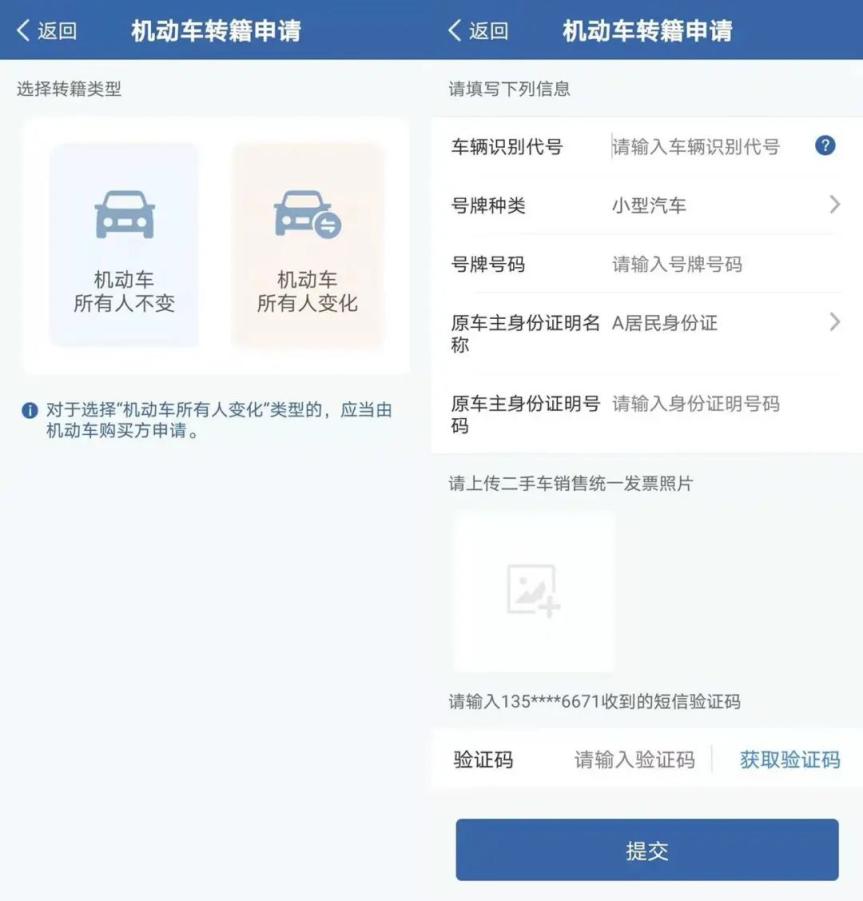 机动车在转入地交易的,现机动车所有人可以通过互联网平台或者向转入地车辆管理所申请;