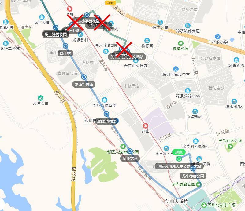 因民塘路临时公交场站临时用地许可到期,结合华侨城创想大厦公交首末站启用,延长M365线,覆盖更多区域。
