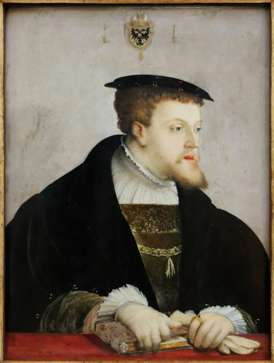 查理五世拿着一本书和手套,克里斯托弗•安贝格尔创作,1532年