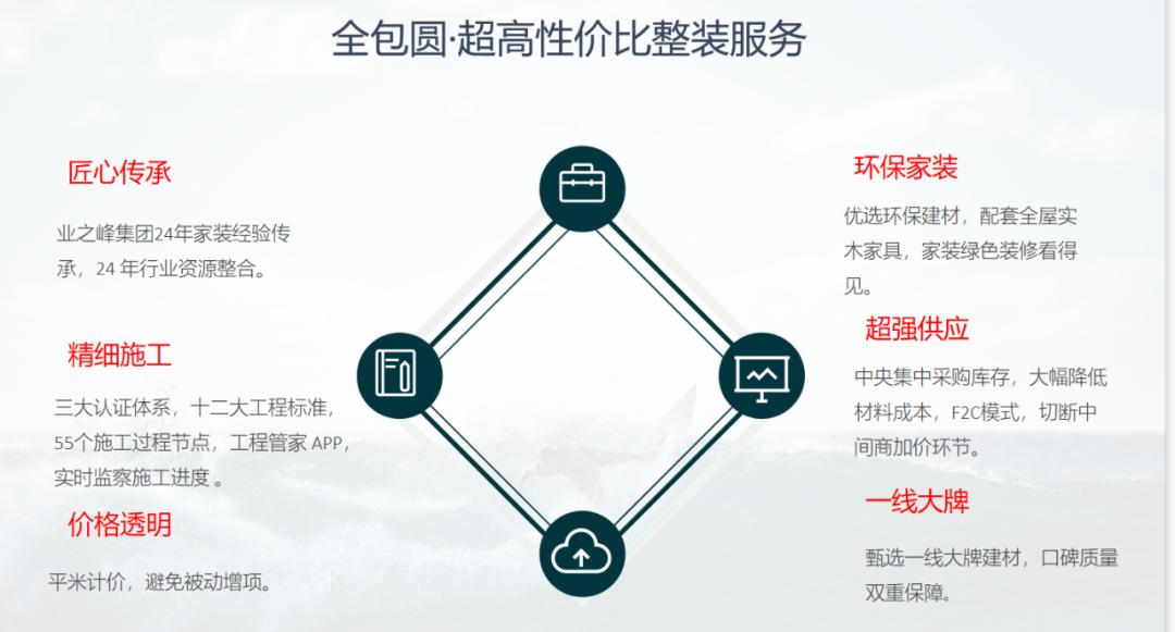 材料全部为国内外一线大牌,基础工程全部升级为十年质保