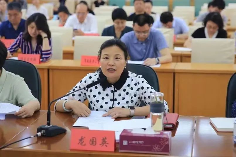(龙国英副市长向省妇儿工委评估组汇报我市实施省两纲情况)