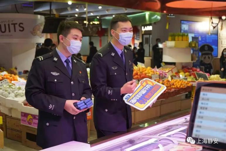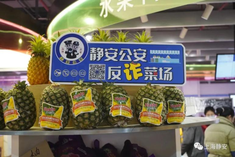静安警方介绍,为了让反诈宣传更接地气,吸引更多市民参与,让菜场也成为新的反诈宣传基地,因此精心策划、推出了“反诈菜场”,让反诈元素围绕在群众身边。