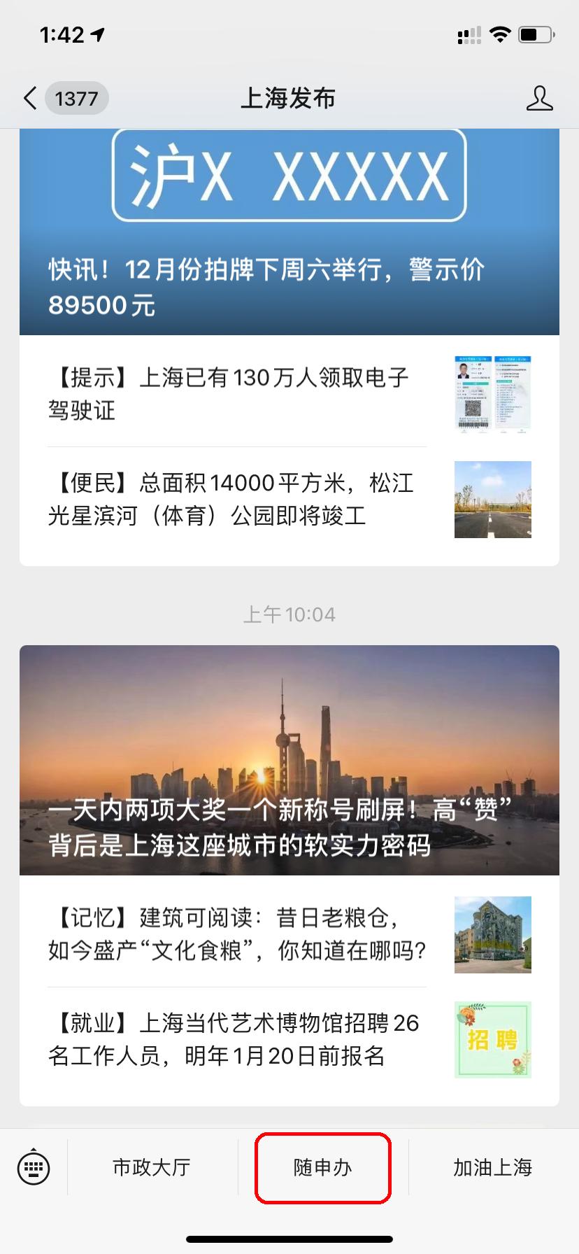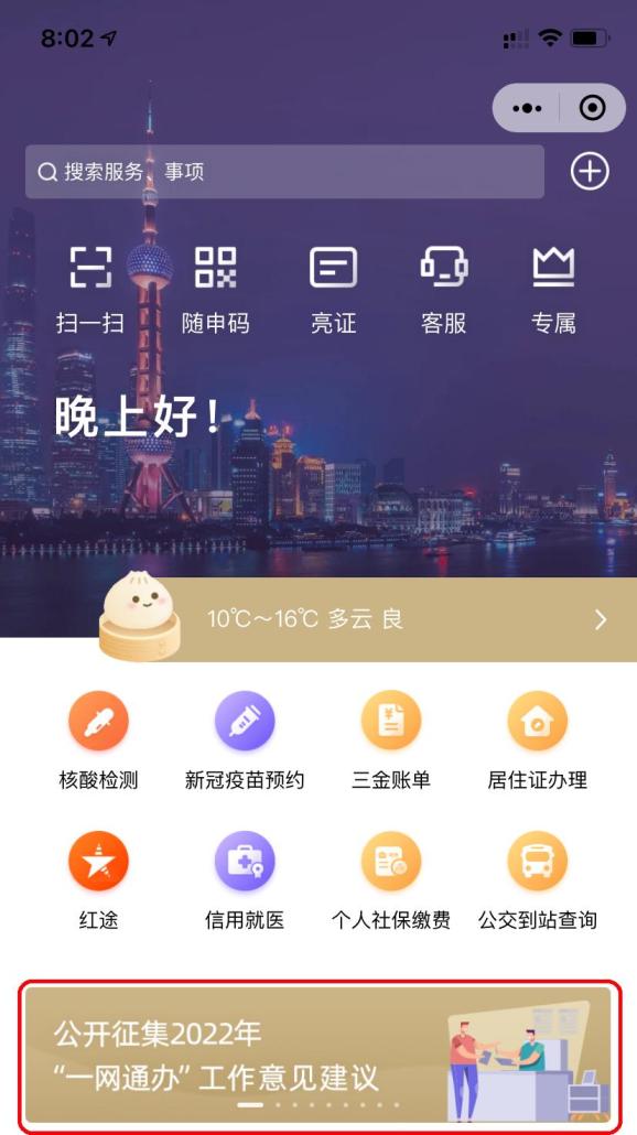 通过“随申办”APP、“随申办”支付宝小程序通过首页“运营位”点击进入