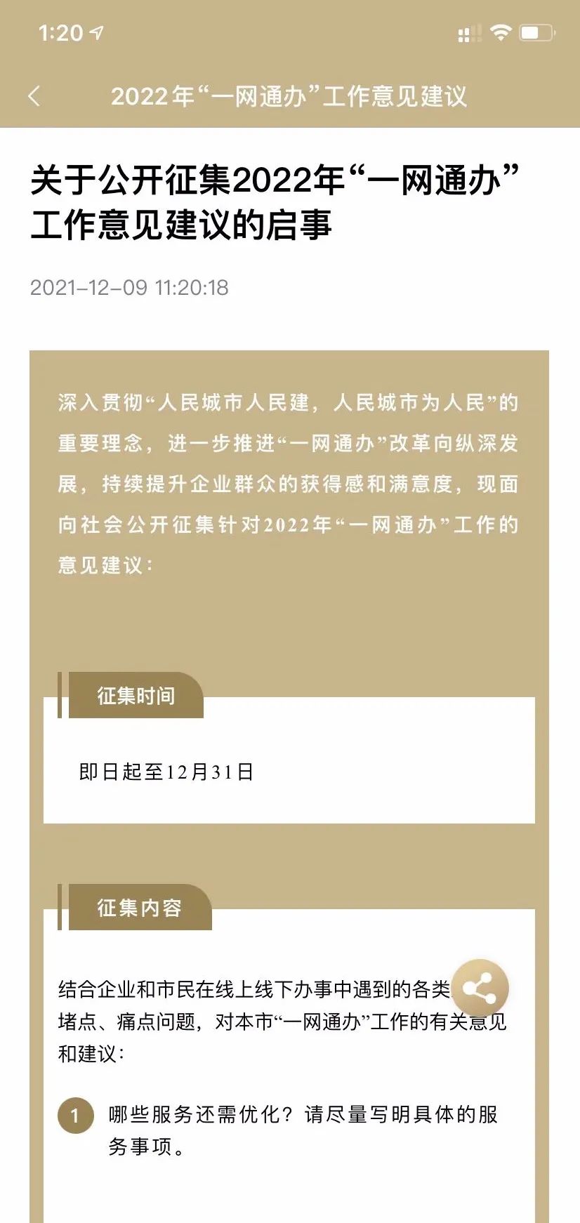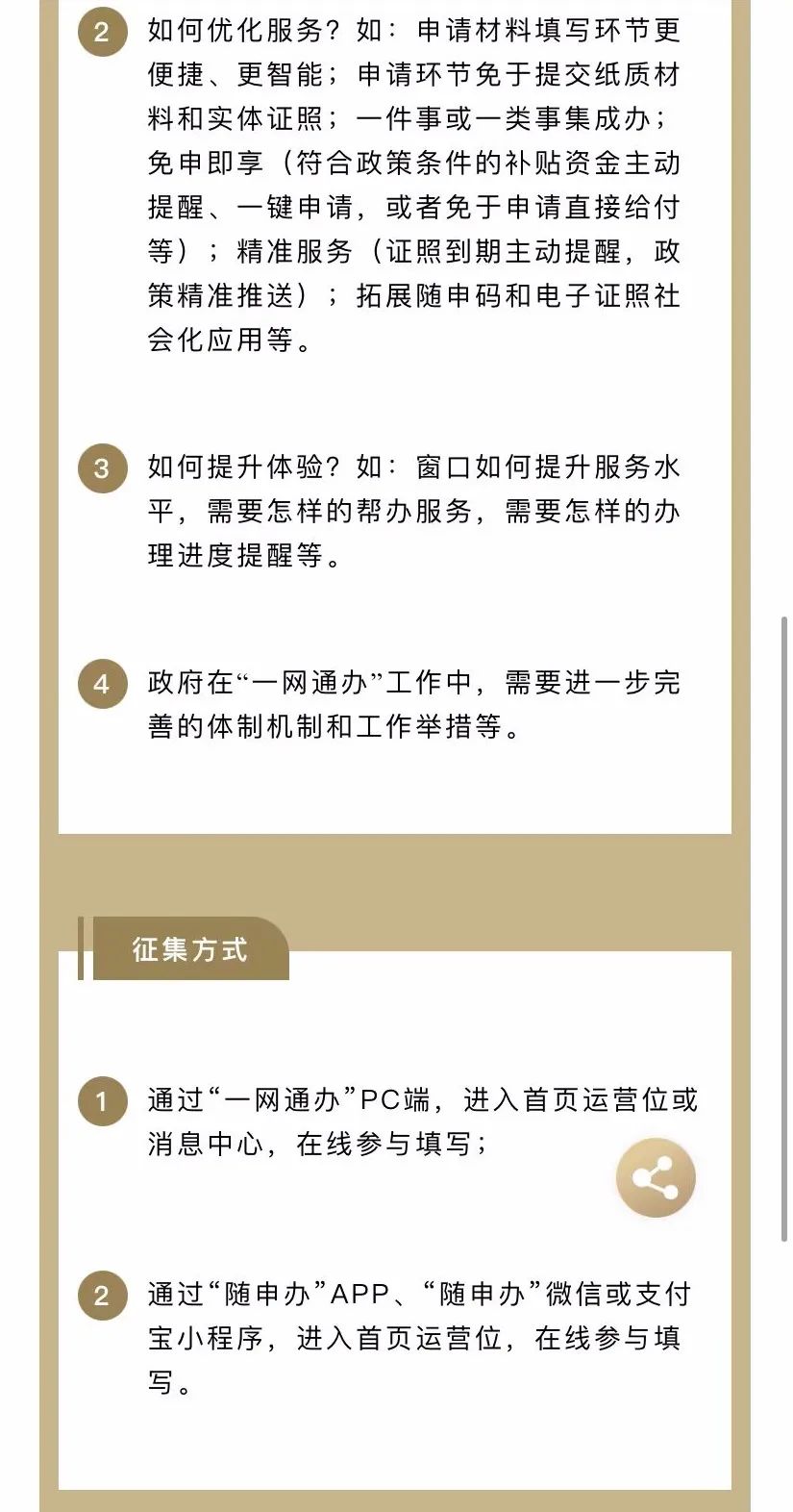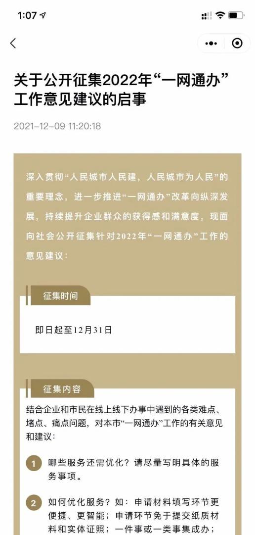 原标题:《如何优化政府服务和提升办事体验?2022年“一网通办”工作意见建议开始征集啦》