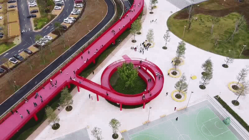 这座公园最有意思的设计,π桥得算一个。设计方在桥的栏杆上装点了小数点后2017位的数字,还呼应了公园开园的时间,甚至还将圆周率谱成诗歌,作为桥上的背景音乐呈现。