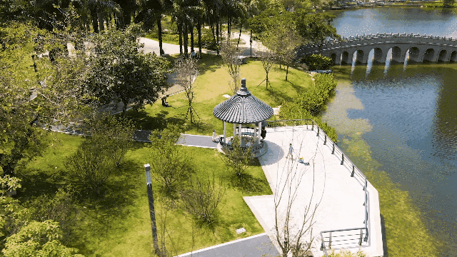 这座公园颇具岭南书卷气息,庭院茶居遍布,素雅如水墨画。在古典园林建筑文化的基础上,他们还用新技术赋予了它全新的生机。