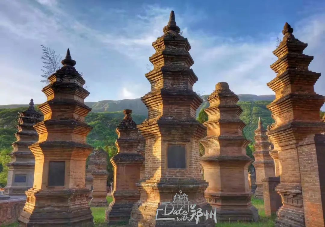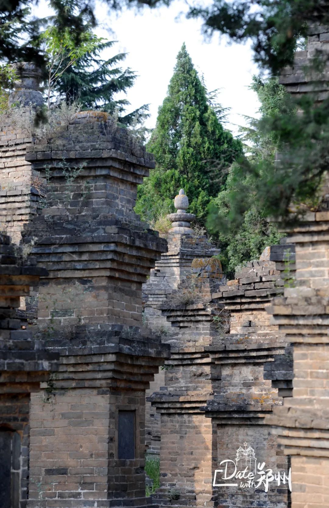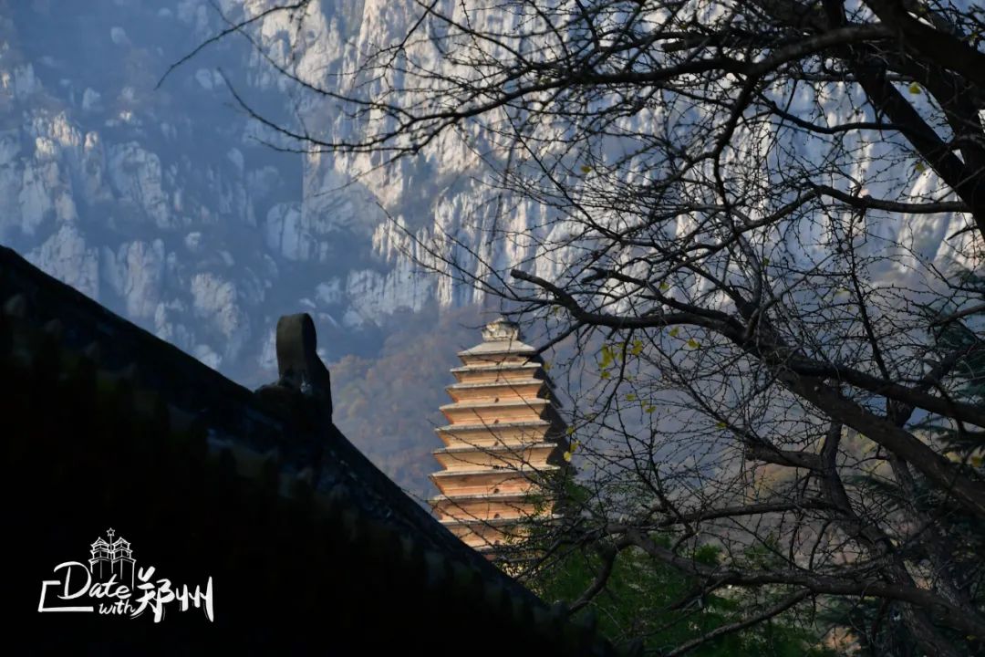 嵩高维岳,向东远眺,嵩岳寺塔从延绵不绝绿海中涌出,与不远处的法王寺塔遥相呼应。白居易曾在《夜从法王寺归嵩岳寺》里写道:“双刹夹虚空,绿云一径通”。