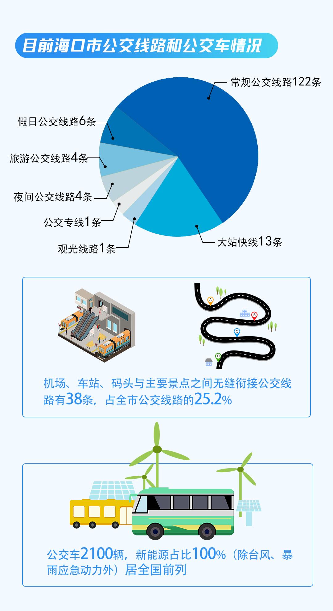 近年来,海口市大力推行公交优先发展战略,在公交线路开设、线路持续优化、场站建设、充电设施和信息化建设上下功夫,不断增加运力规模、优化调整线网,提高覆盖率,推出多样化服务,以满足市民公共交通出行需求。