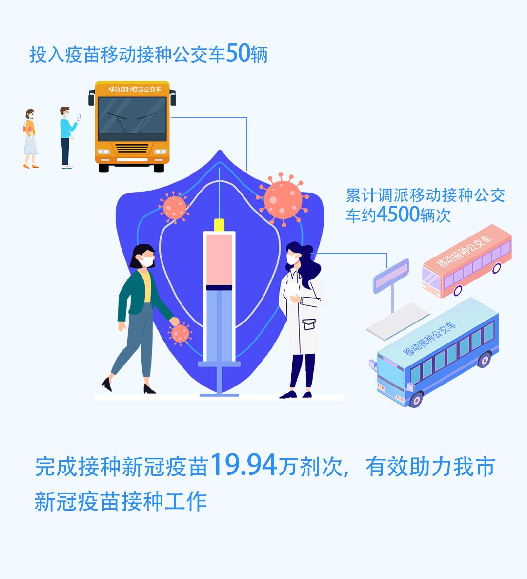 ��大型活动公交保障。近年来,海口公交集团充分发挥公交公益性定位和公交大容量优势,主动对接文旅、交通、交警、教育等部门,掌握演唱会、消博会等重大活动计划安排,提前谋划公交保障的筹备,精心准备、精密落实、确保顺畅,全力提升海南自由贸易区(港)公共交通服务,彰显国企责任担当。2019年以来累计安全运送市民游客120万余人次;疫情防控以来,持续做好美兰机场、新海港、南港、秀英港、海口火车站等三港一站特定旅客运送任务,安排线管人员及驾驶员24小时驻点值守转运点,积极落实特定旅客转运工作。2020年1月25至2021年6月30日,累计发班1.45万趟次,安全转运8.08万人次,为巩固疫情防控成果,守护城市和人民生命安全提供了坚实的保障;同时,有效助力我市新冠疫苗接种工作,共投入疫苗移动接种公交车50辆,累计调派移动接种公交车约4500辆次,完成接种新冠疫苗19.94万剂次,切实筑牢人群免疫屏障。