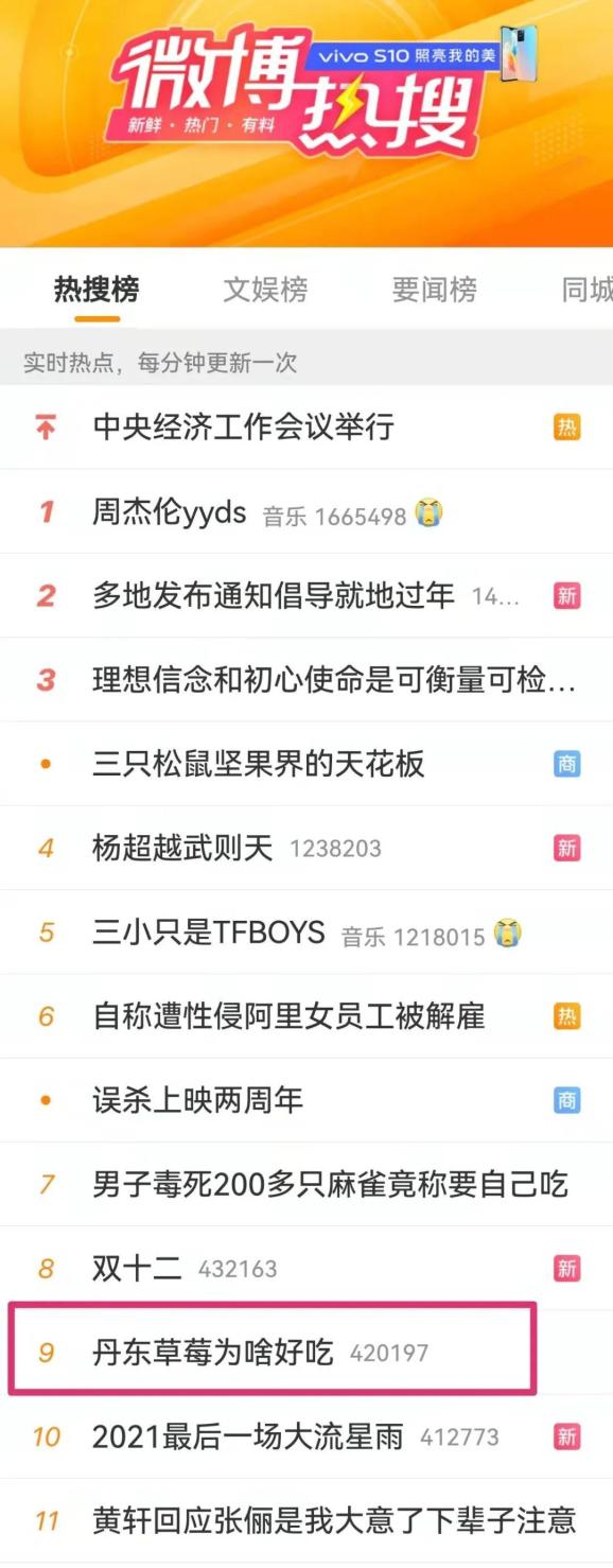 原标题:《【快看】藏不住了!#丹东草莓为啥好吃#喜提热搜第九!》