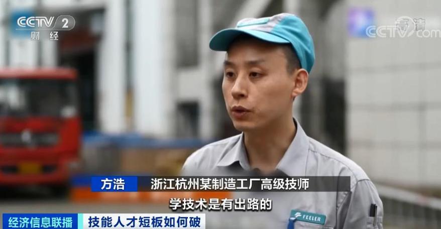 浙江杭州某制造工厂高级技师 方浩:工资待遇各个方面都在稳步提升,所以我觉得学技术还是有出路的。