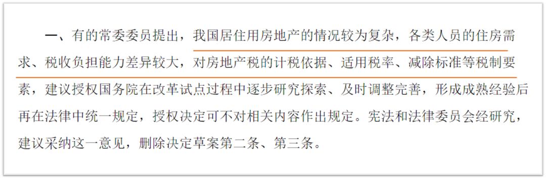 另一份文件是,全国人大常委会就房地产试点草案的审议报告。