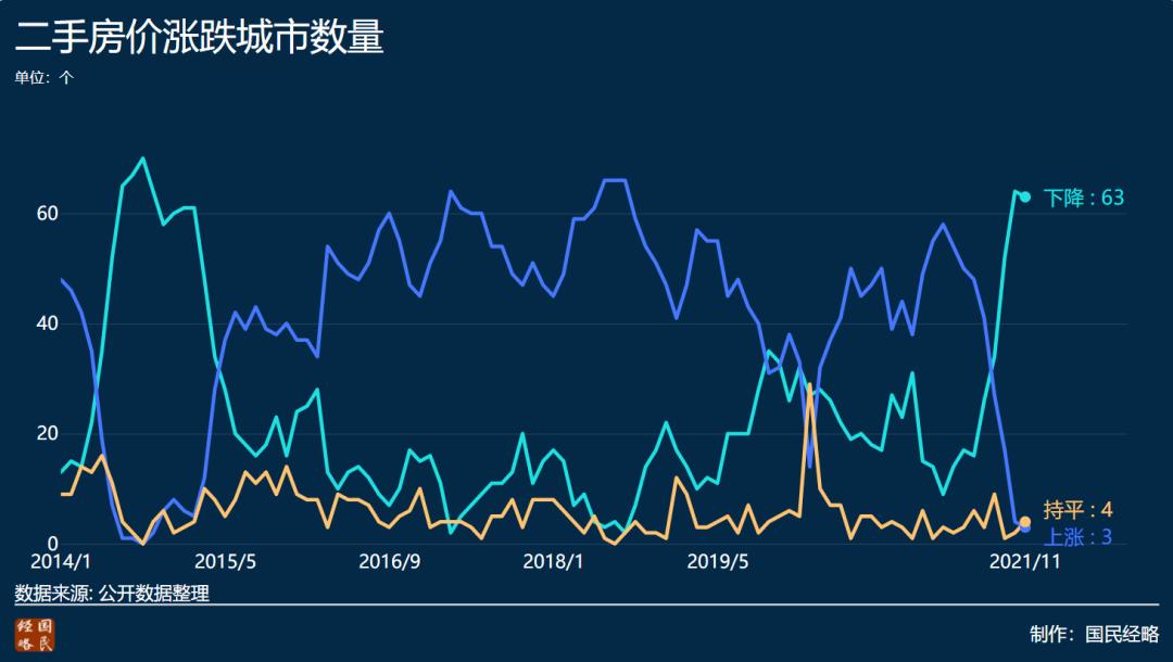 刚刚公布的70城房价数据显示,各线城市新房、二手房售价总体下降,二手房环比上涨城市仅有3个,创下2015年以来的新低。