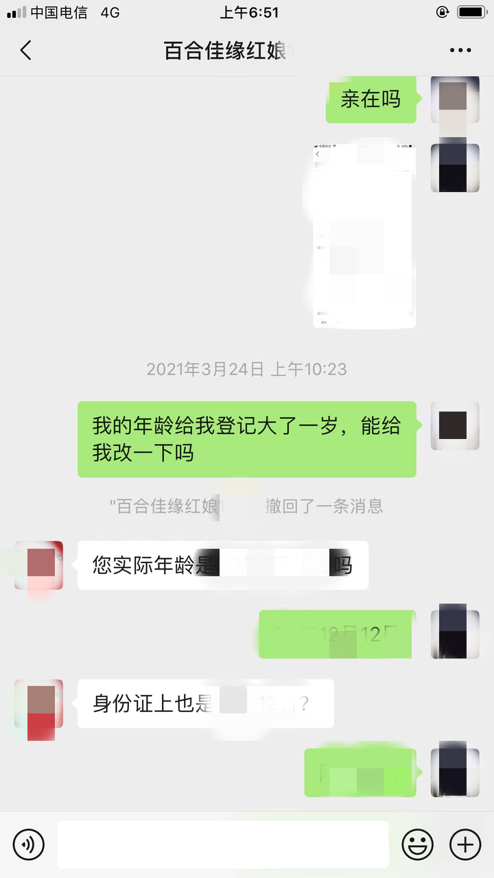 屡次被发现红娘推荐的男士资料有假后,小张也开始怀疑,平台可能根本没对介绍对象进行资料审核,她开始回忆起自己提交资料时的情景,“我就是跟红娘说了一下自己的情况,说完后也没要求我提供什么证明材料,既然没审核我,估计别人也是没审核过的。”小张说,甚至就连当初登记年龄时,不知怎么的还给自己算大了1岁,她曾要求修改,最后也没能改过来。