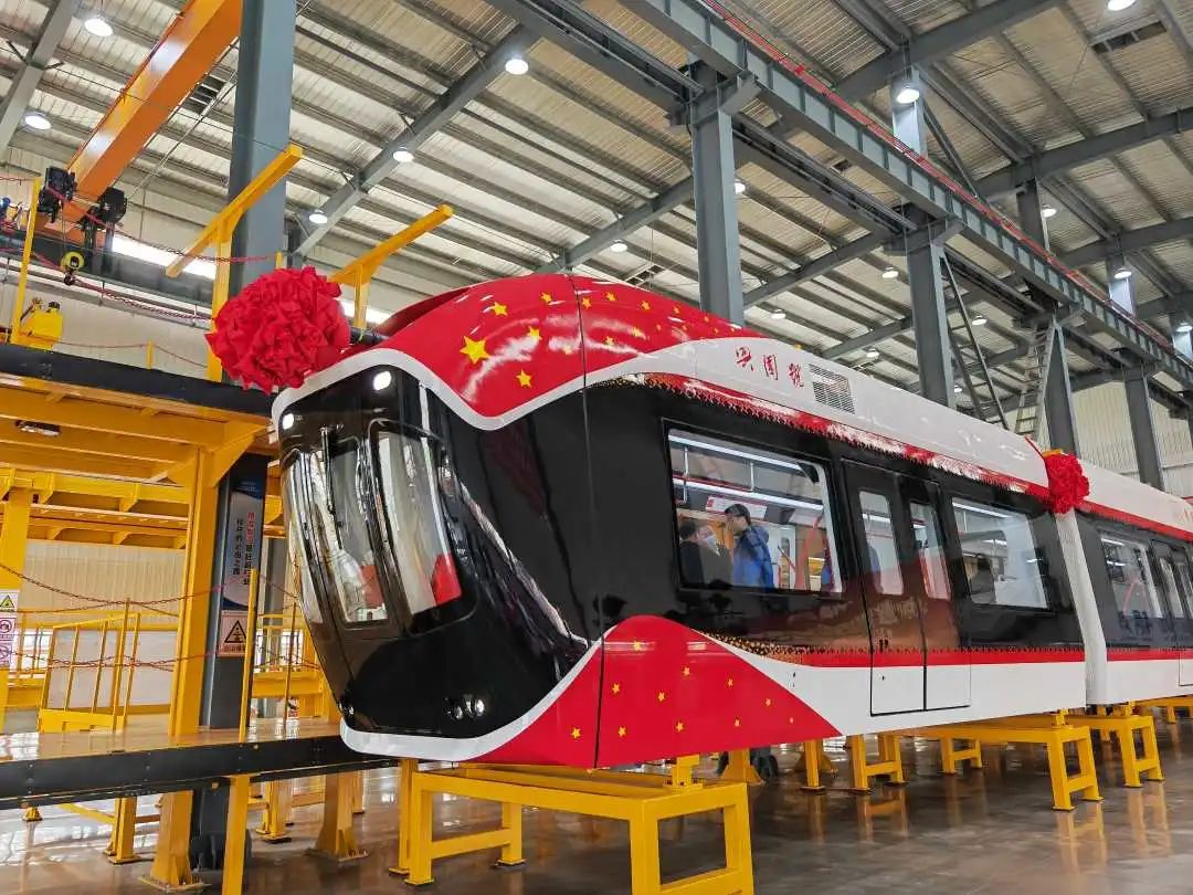 江西兴国县永磁磁浮技术工程示范线全长878米,2车辆编组,定编88人,设计最高运行速度每小时120公里。此次下线的“兴国号”列车头部、车身56颗五角星及熊熊燃烧的火炬设计,体现红色文化元素。