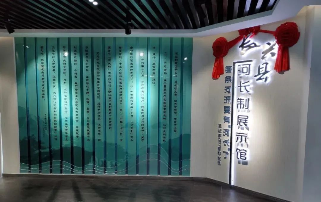 长兴县河长制展示馆位于长兴县龙山街道兴国商务楼1号楼,分7个展示区:门厅、序厅、长兴之水、探索的故事、实施方法、攻坚克难、节水教育基地,应用声、光、电、网络等科技手段,设置了丰富的互动体验项目,参观者不仅可以查询河道、河长基本情况、河长履职情况等信息,还可以跟河长进行实时通话,查看美丽河湖的视频和照片。另外,展示馆还配套教学区,可同时容纳150余人,通过讲座、微课堂、视频、水景观漫游等方式,向公众介绍长兴治水实践经验、创新做法,科普水生态修复、水污染防治、水资源保护等知识。目前,长兴县河长制展示馆已成功获评第四批“国家水情教育基地”和第十批“浙江省生态文明教育基地”。