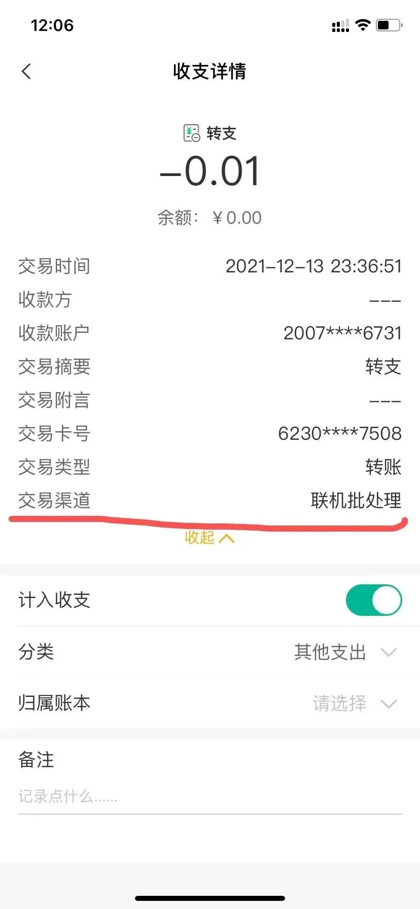 当事人银行账户余额转出记录截图