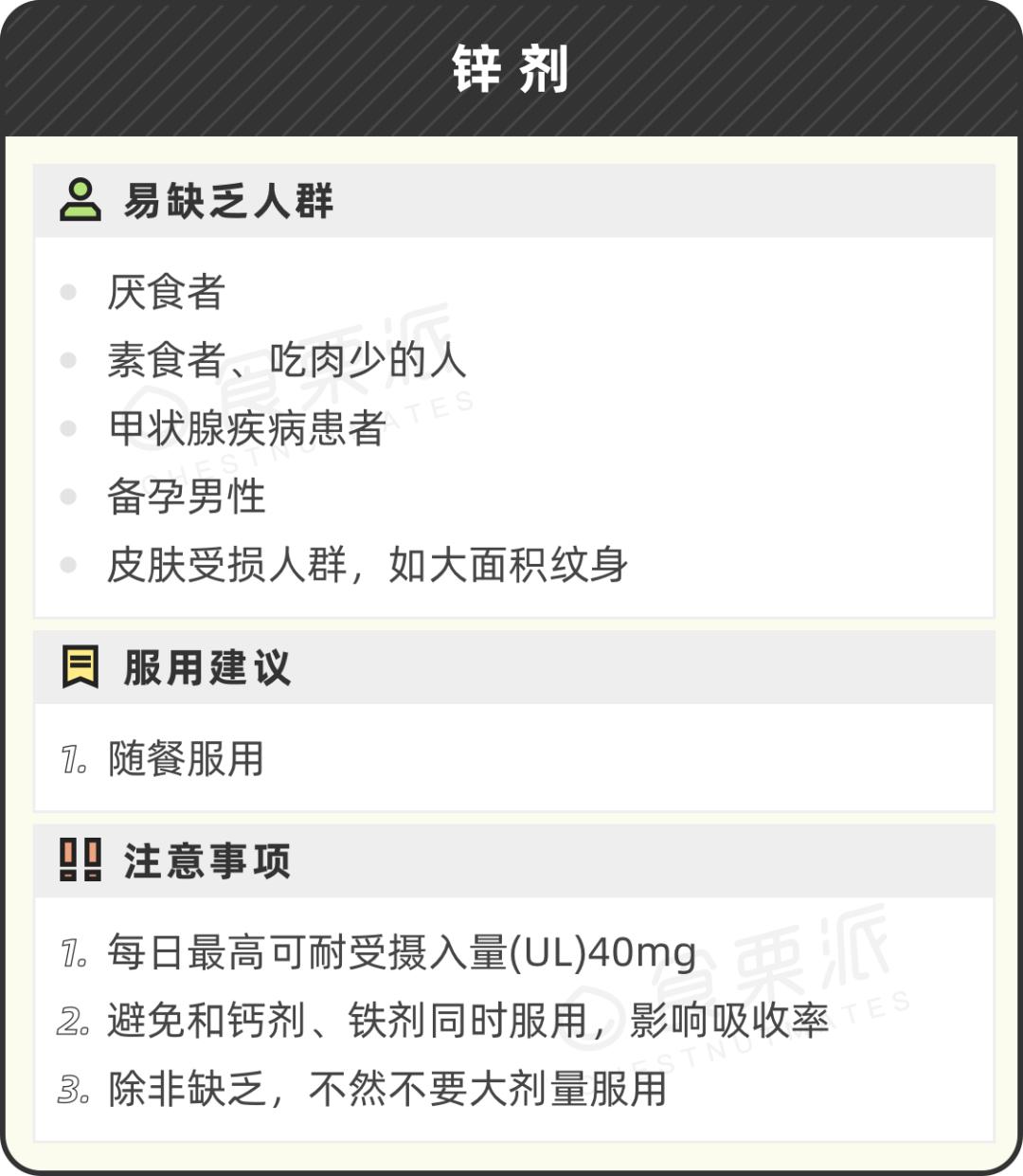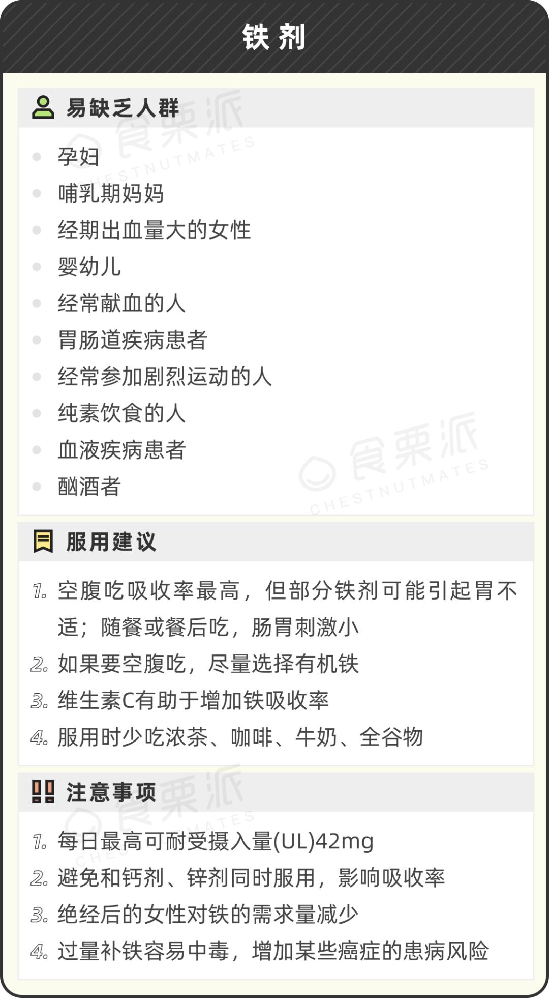 ● 钙、铁、锌等矿物质最好分开服用,以免影响吸收率;