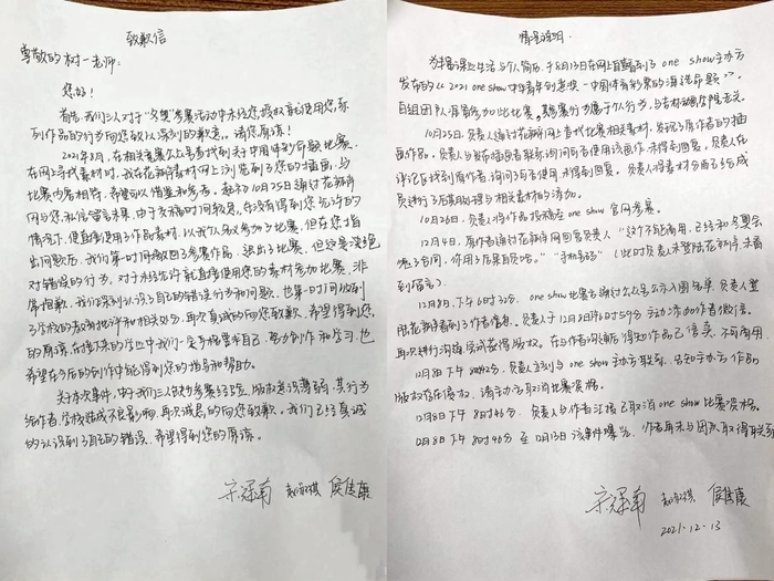 此外,根据声明可知,3名学生向树一手写了致歉信与情况说明,表示由于自己的版权意识薄弱,给作者和学校带来不良影响,诚恳致歉。