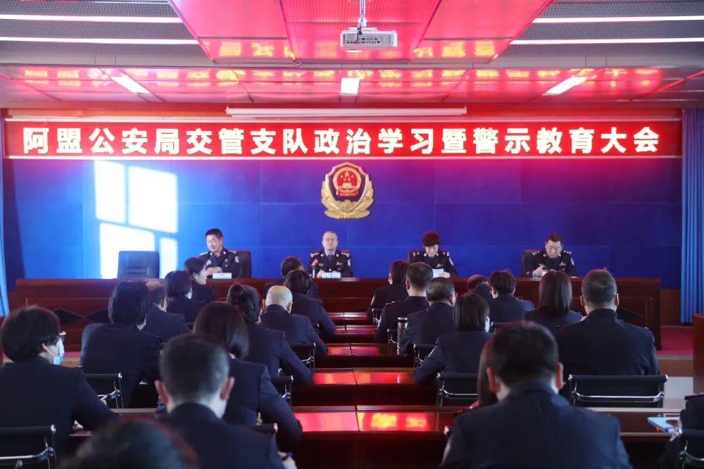 为持续抓好交管队伍教育整顿“大补课”的政治教育和警示教育,推动教育“大补课”学习教育取得实效,12月14日上午,阿盟公安局交管支队组织召开政治理论学习暨警示教育大会。会议由阿盟公安局党委委员、交管支队支队长聂清元主持,在家班子成员、全体民警辅警参加会议。