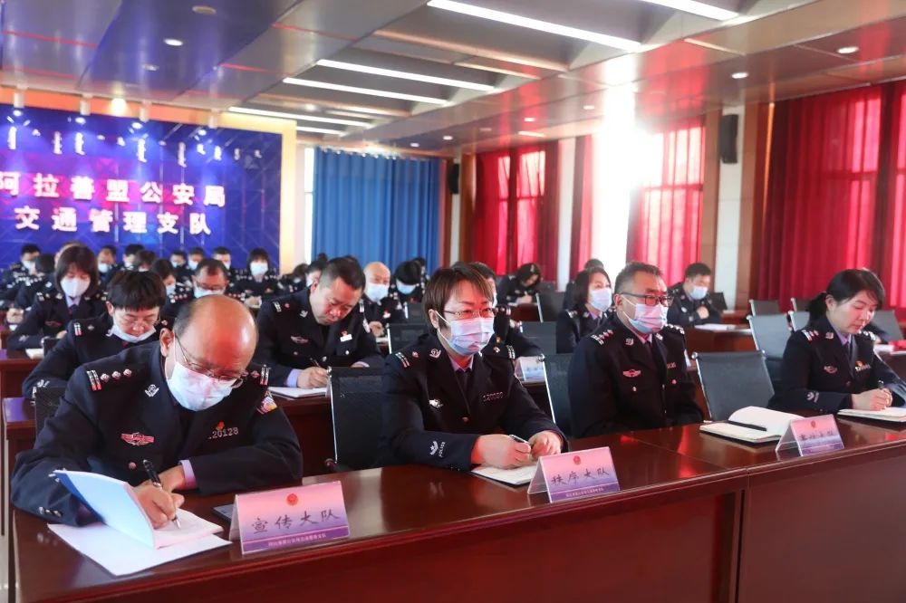 会议做了五点强调。一是要全面落实中央经济工作会议、党风廉政建设和反腐败工作会议精神,全力创建安全、畅通、有序的道路交通环境,拓展深化“放管服”改革措施,不断优化营商环境,为全盟经济社会高质量发展贡献力量。同时,要一刻不停推进党风廉政建设和反腐败斗争,持续深化不敢腐、不能腐、不想腐的思想根基。二是要大力弘扬英模精神,全盟公安交管队伍教育整顿“大补课”期间,阿右旗公安局交管大队教导员许君成荣获全国公安机关成绩突出交警,支队车管所查验岗民警杨斌入选《正向激励 典型引路》——全区公安优秀民警代表事迹选编;支队多名人员在疫情防控中立功受奖,要以英模精神为指引,弘扬正能量,唱响主旋律,不断凝聚和激发全体民警勇于奉献、担当作为。三是要切实强化作风建设。抓住队伍建设这个根本主题,切实从严队伍管理,绝不能在“人车枪弹酒密网”等方面发生问题,各级领导要全面履行好“一岗双责”,工作中要善于知微见著,做好队伍风险防控,抓早抓小抓苗头,做到知底线、存戒惧、守规矩。四是做好岁末年初各项工作,全力做好冬奥会交通安保工作,落实好年底绩效考评各项工作,着重是“减量控大”各项任务落实,持续发力、迎难而上,圆满完成2021年度收尾工作,为2022年公安交管工作开好头、布好局。