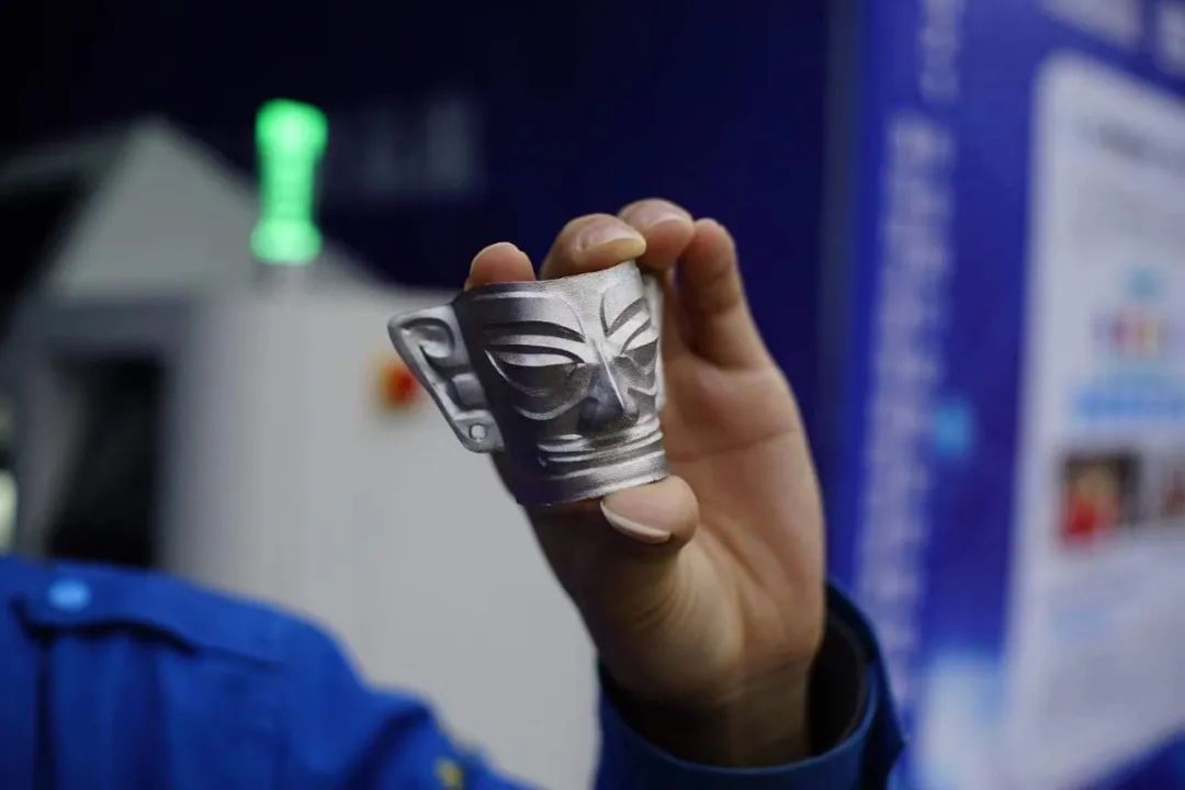 “这一套打印设备都是国产的。”为了展示3D打印技术,罗九龙和团队决定在现场打印4个三星堆神秘面具。经过6个小时,面具顺利“出土”。经过打磨抛光后,引来了众多参赛者围观。据了解,在三星堆新发现祭祀坑考古发掘中,在提取一座高达70厘米的大口尊时,科学家首次使用了3D打印技术,先利用3D扫描仪搜集大口尊的形态数据,再用3D打印出一模一样的石膏模型。