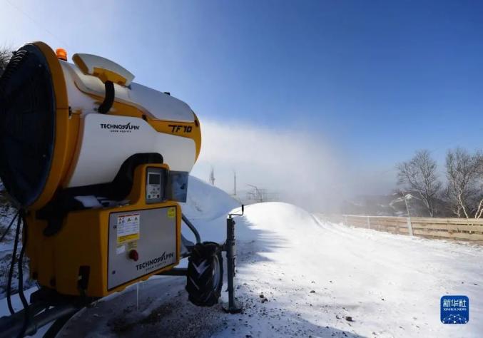 一台造雪设备正在工作。新华社记者张晨霖摄