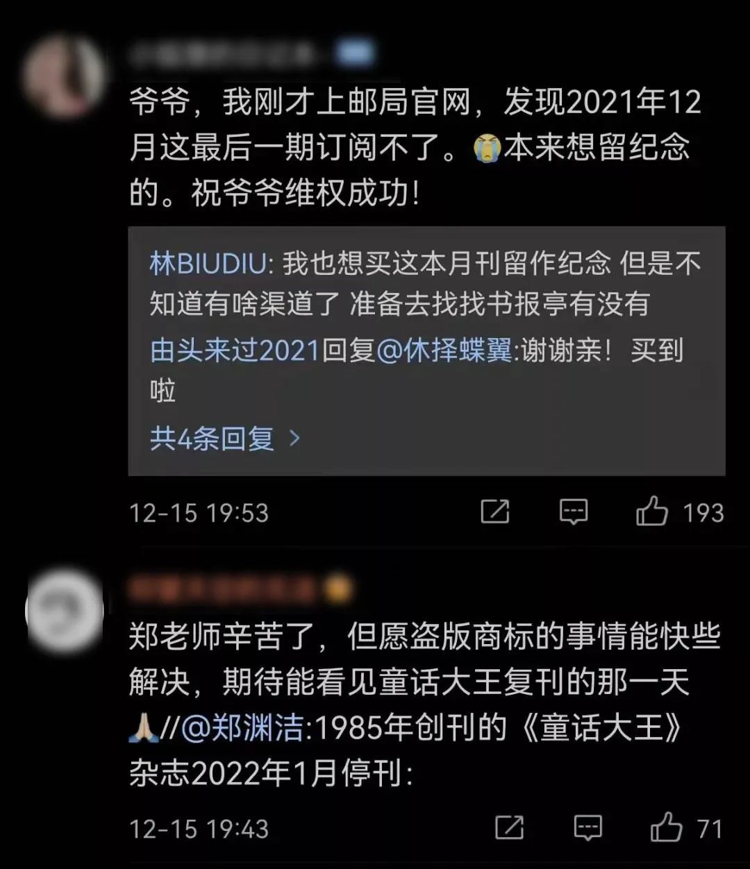 其实,停刊的消息,早在11月15日郑渊洁发表在微博上的《郑渊洁写给三个商标的一封信》里就已明确透露。