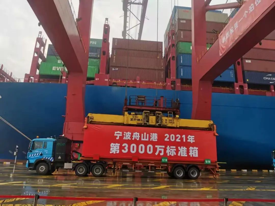 这标志着,今年以来,宁波舟山港集装箱吞吐量首破3000万标箱,继上海港、新加坡港后,成为全球第三个跻身“超3000万标箱俱乐部”的重要港口。