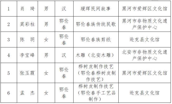 原标题:《祝贺!黑河市再增6位省级非遗代表性传承人》