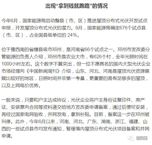 原标题:《被叫停的南阳等地屋顶光伏“圈地运动”》