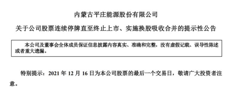 双十二的晚上,广大股民没有等来太多股市的狂欢消息,而是等来了内蒙古平庄能源股份有限公司(证券简称:ST平能)的一纸公告。