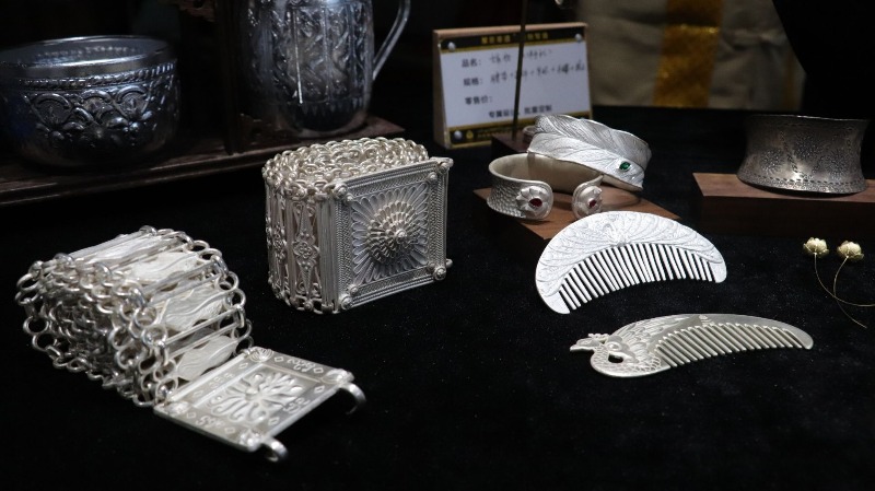 随着推介员对非遗伴手礼的生动介绍,在场嘉宾对此次展出的傣装、傣纸、傣陶、傣银等产品的背景和文化有了进一步了解。发布会现场共展出“金”系列产品100余件,“木”系列产品100余件、“土”系列产品近300件、“石”系列产品100余件、以及包含基诺族、傣族、布朗族、哈尼族、瑶族等服装手工艺产品1000余件,品种多样的文创产品吸引了嘉宾们驻足欣赏。现场一名嘉宾说:“这次的布展真是让人眼前一亮,这些展示里面我最喜欢傣锦系列产品,这个伴手礼不仅充满了民族特色,如果送朋友,也是一件不错的礼物。现场的糕点也非常好吃,我要买点回去给小朋友尝尝。”