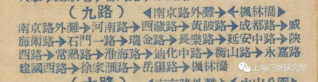4月1日,9路汽车自大木桥延伸至枫林桥,并将下行车改自中正北一路(今石门一路)直驶南京西路,东行至新世界。