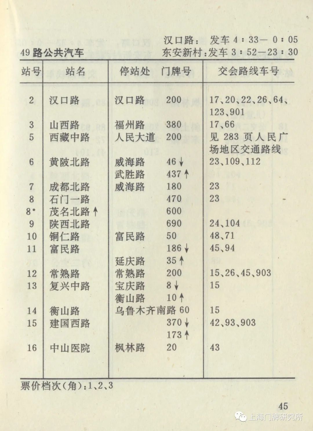 6月23日,49路往汉口路江西中路方向调整走向,自原线中山南二路起,经东安路、斜土路,循枫林路原线至宝庆路,经由常熟路直入华山路、延安中路,再循原线。