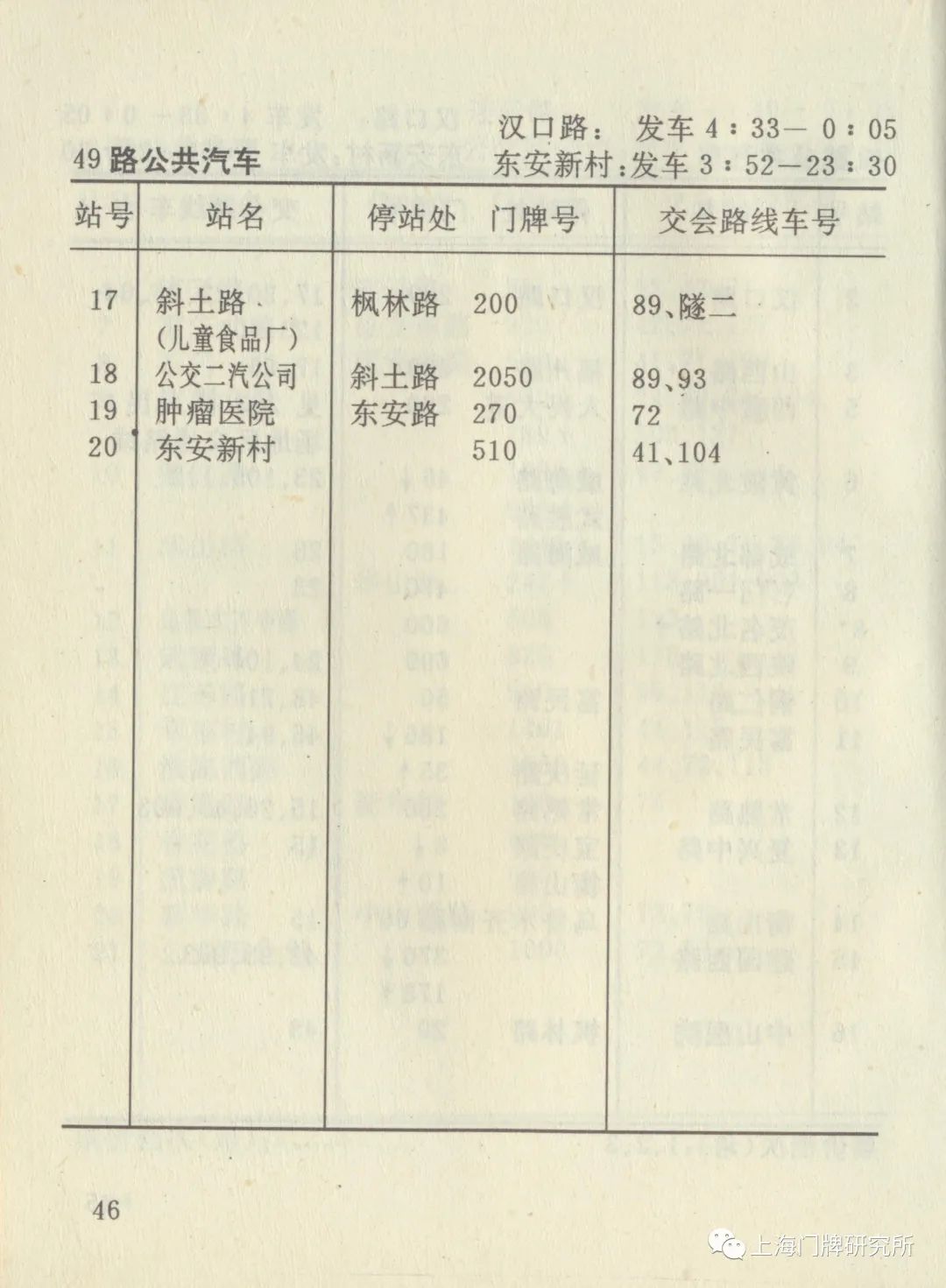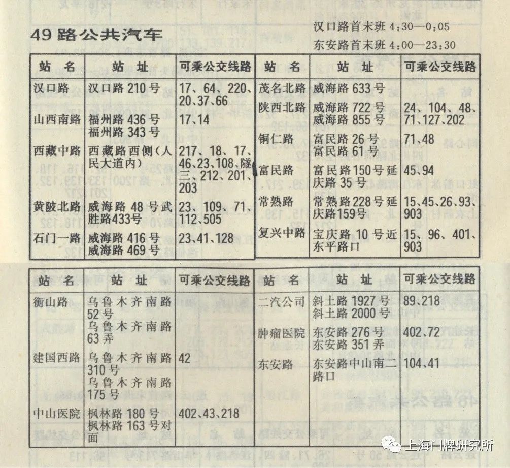 12月16日,49路汽车由斜土路枫林路延伸至东庙桥路(今东安路)龙山路(今中山南二路),中途增设汽车二场、中医学院、龙山路等站。同时,自南京东路外滩原线起至常熟路后,改道经宝庆路、靖江路(今桃江路)折入岳阳路(不久又恢复乌鲁木齐路原走向),循原线行驶至东庙桥路龙山路(东庙新村,即今东安新村);回程相同。