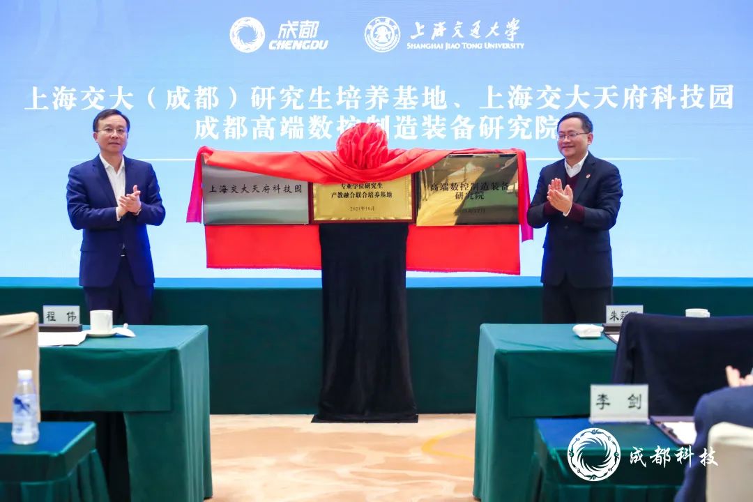 活动现场,上海交大(成都)研究生培养基地、上海交大天府科技园、成都高端数控制造装备研究院正式揭牌。