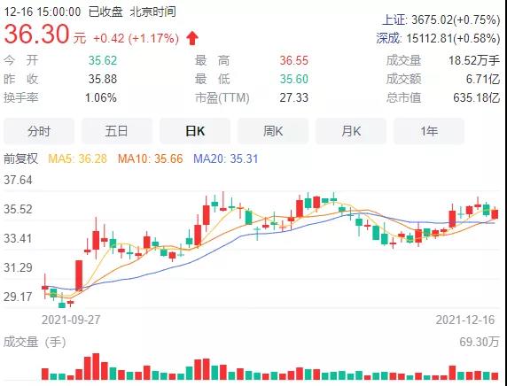 截至12月16日收盘,华东医药股价报收36.3元/股,涨幅1.17%,最新市值为635.18亿元。