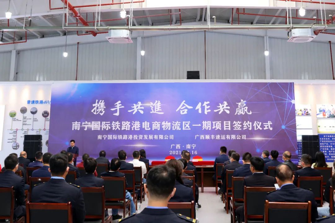 16日上午,南宁局集团公司下属南宁国际铁路港投资发展有限公司与广西顺丰速运有限公司达成签约合作。签约后,顺丰速运将正式进驻南宁国际铁路港公路港电商物流区,使用土地面积约285亩,建筑面积达15万多平方米, 建设、设备、设施等总投资估算超过10亿元,将分别建设快递分拨中心和大货物流分拨中心,预计2022年底建成投入使用。