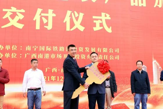 同日,南宁国际铁路港农产品加工区项目正式交付使用,该项目总占地面积151亩,总建筑面积5万多平方米,建有四座大型仓库,后续引进安装12条大米加工生产线,年加工产能达65万吨以上,打造广西最大的精米加工基地和粮油产品交易中心。