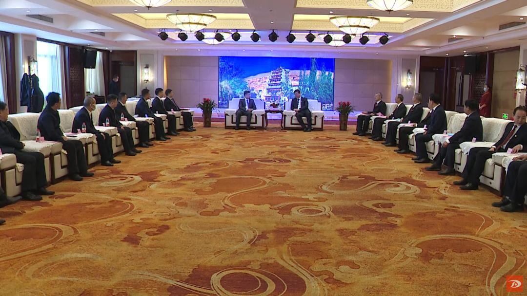 签约仪式前,王立奇、唐培宏、石琳、朱建军等酒泉市和敦煌市领导会见了企业代表。