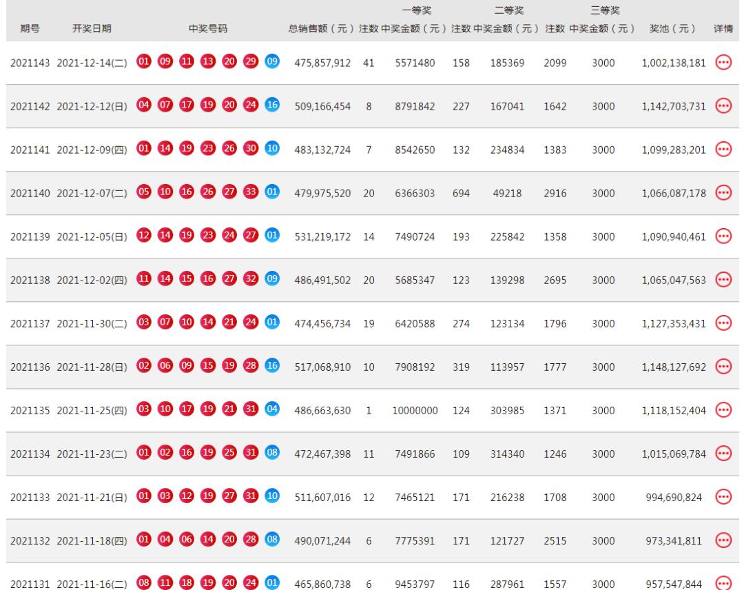 据统计,自第2021131期开始,至2021年12月14日第2021143期开奖结束,双色球开奖13期共中出一等奖175注,其中124注中得一等奖特别奖,六等奖翻番奖也中出上亿注。